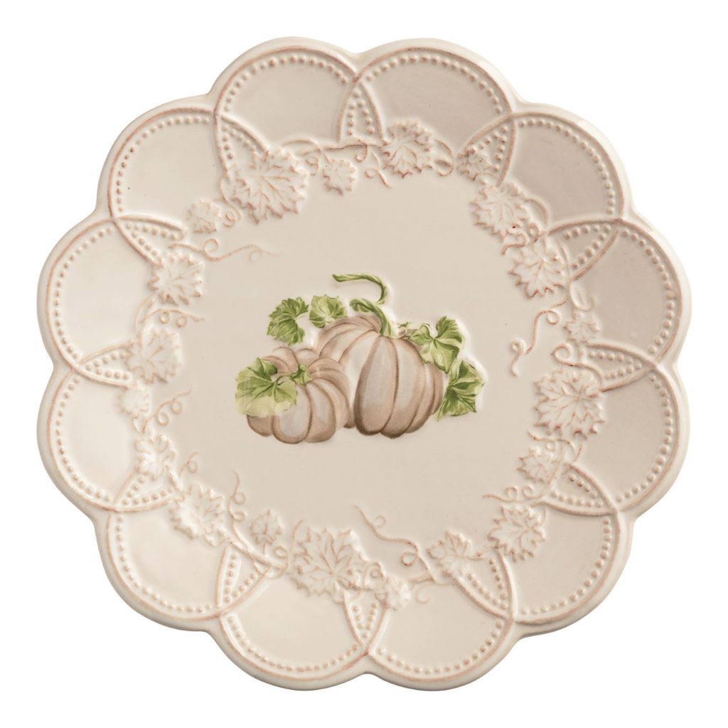 Elevate your autumn dining experience with our White Pumpkin Salad Plate, featuring elegant scalloped edges that add a touch of sophistication to your table setting. These charming plates showcase a delicate white pumpkin design that perfectly captures the essence of fall without overwhelming your décor. Exclusively available at our Kansas City shop, these versatile plates will become the centerpiece of your seasonal gatherings and everyday meals. Don't miss the opportunity to enhance your fall collection with these beautiful, must-have plates.