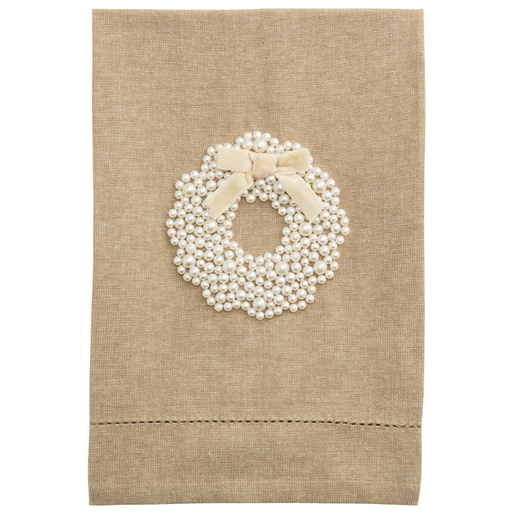 Elevate your holiday décor with our exquisite Wreath White Christmas Pearl Tea Towel. This stunning kitchen accessory features delicate pearl beading that catches the light beautifully, adding a touch of elegance to your festive home. More than just functional, it's a conversation piece that transforms ordinary moments into holiday magic. Perfect as a sophisticated hostess gift or treasured addition to your own collection. Available exclusively at our Kansas City gift shop, where we pride ourselves on offering unique, memorable gifts that become cherished parts of your holiday traditions for years to come.