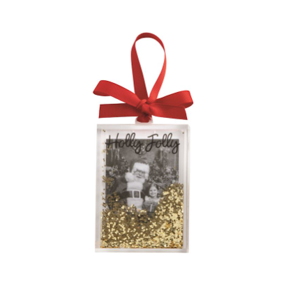 Capture holiday memories with this charming Christmas Glitter Photo Ornament. Featuring sparkling glitter and a festive bow, it’s the perfect keepsake to showcase your favorite Santa photo. Ready to hang and brighten your tree, this ornament adds a touch of magic to your holiday décor.