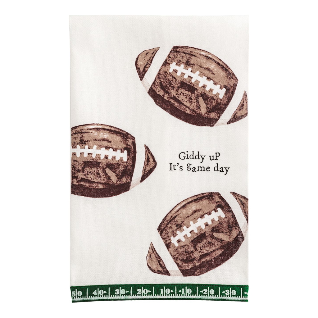 Saddle up for victory with our "Giddy Up It's Game Day" tea towel! This spirited kitchen essential captures the excitement that bubbles up when it's time for kickoff. Perfect for the sports enthusiast who transforms their home into fan central every weekend. Use it to wipe up celebratory spills, dry dishes while watching pregame coverage, or simply display your team spirit in style. Durable enough for the entire season and charming enough to gift to your favorite superfan for birthdays, holidays, or as a game day surprise. Because true fans know – it's not just a game, it's an event!