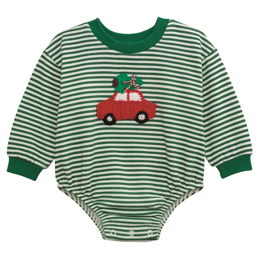 Wrap your little one in festive charm with our Christmas Car Sweatshirt Bubble outfit. This adorable holiday ensemble makes the perfect baby shower or newborn gift, combining comfort with seasonal style. Exclusively available at our Kansas City gift shop, this premium baby outfit will have everyone swooning over your little bundle of joy during the holiday season.